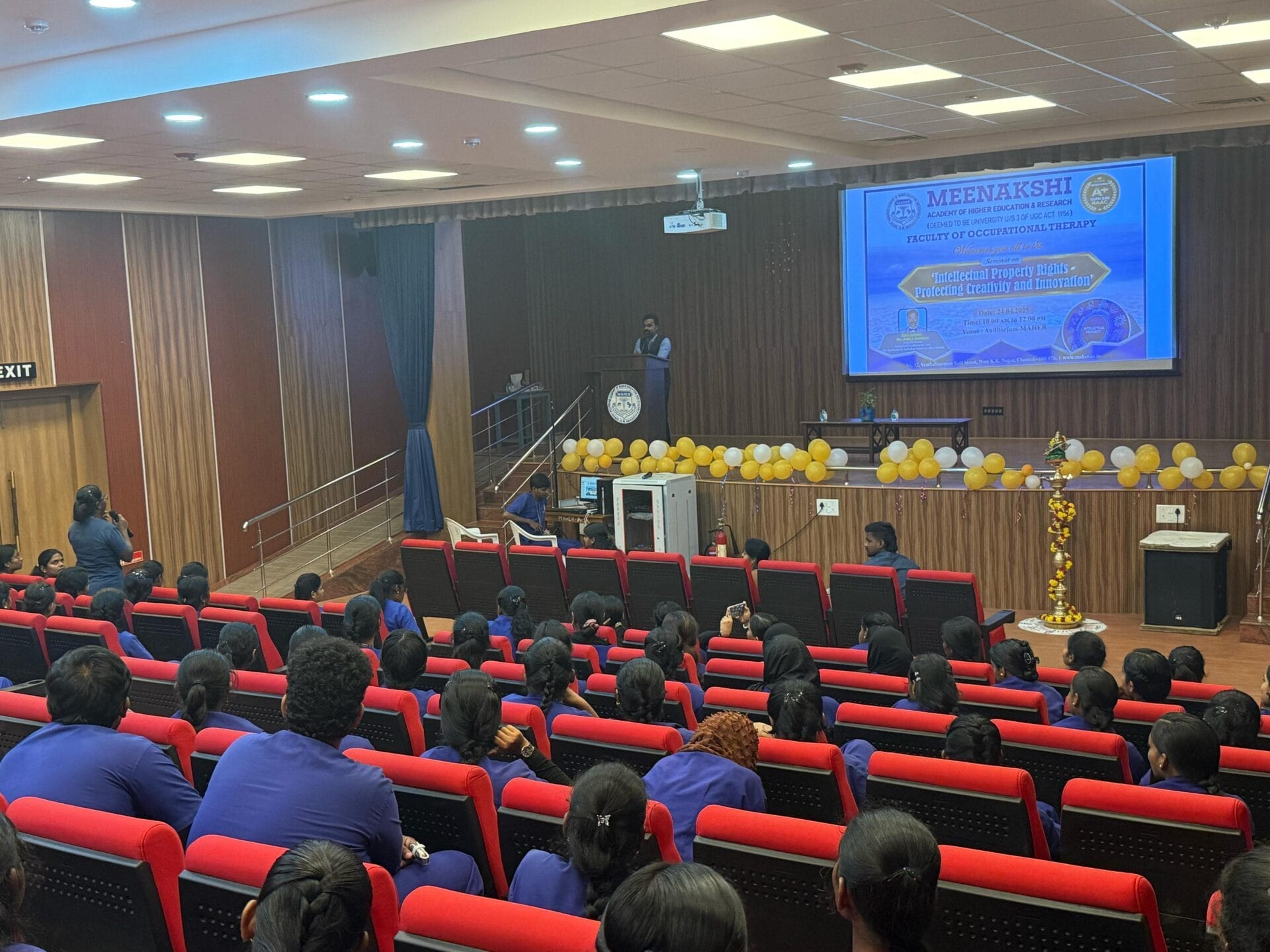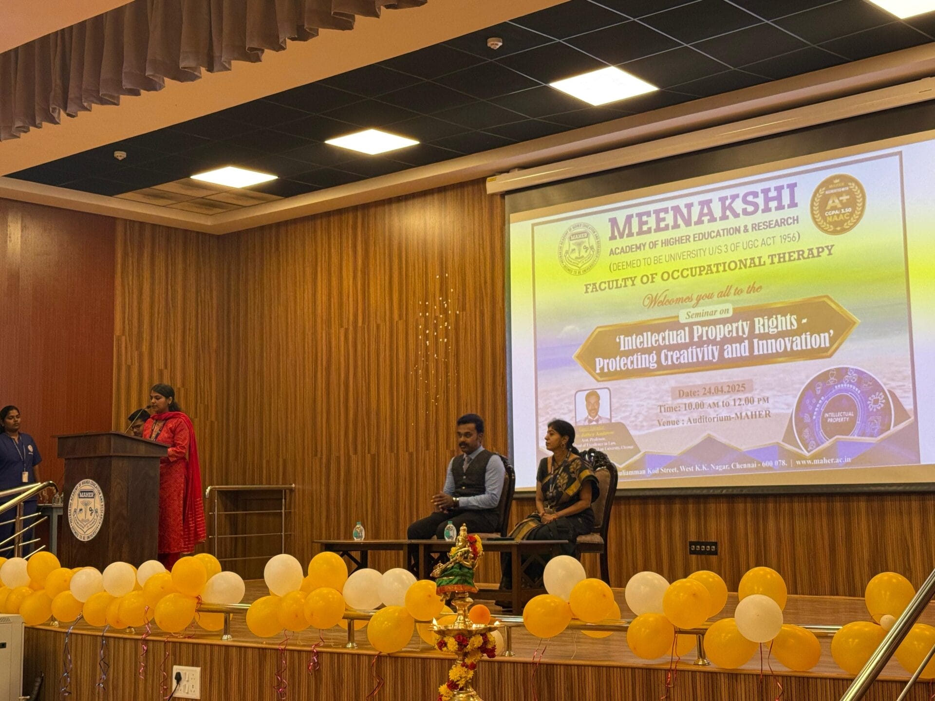 The Intellectual Property Rights (IPR) Cell of the Faculty of Occupational Therapy, MAHER, organized an enriching seminar on “Intellectual Property Rights – Protecting Creativity and Innovation” on 24th April 2025 at the MAHER Auditorium.