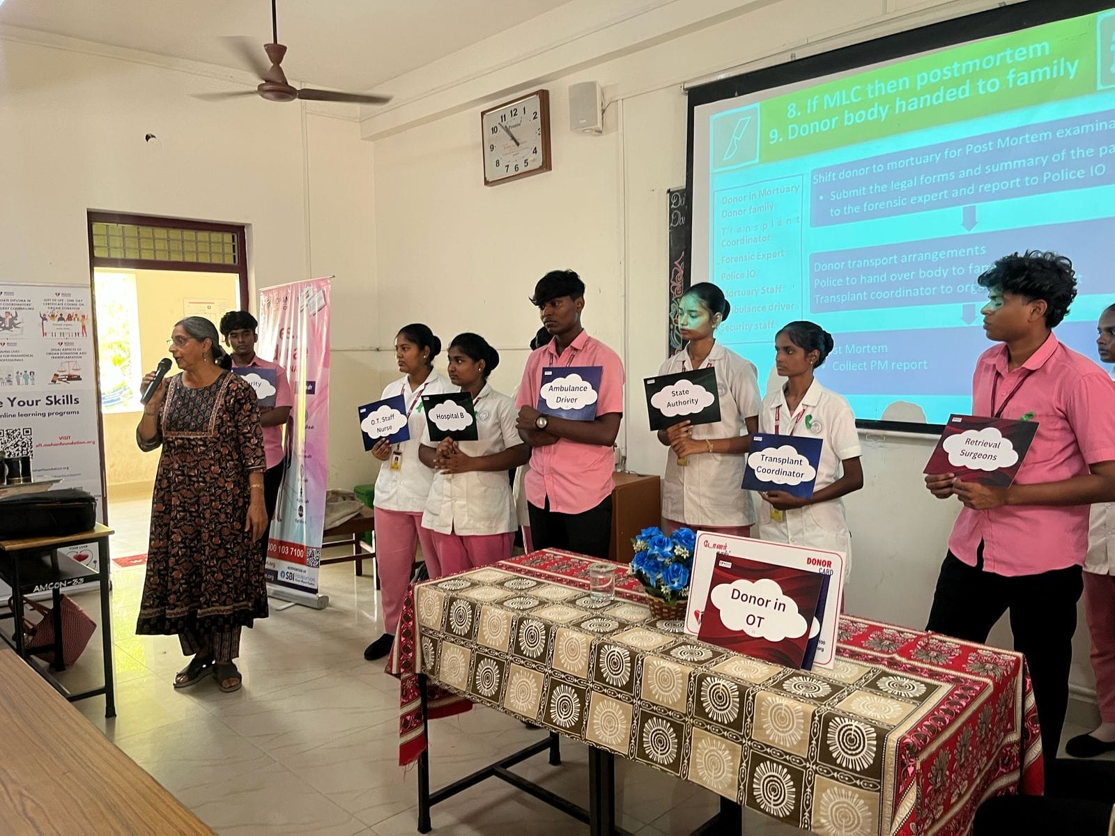 Dr. Victor Devasirvadam, Principal, AMCON, delivered the special address, highlighting the importance of organ donation. Mr. Ganesh, Project Manager, MOHAN Foundation, conducted an interactive session addressing the concepts and myths related to organ and tissue donation. Dr. Hemal Kavinde, Quality Assurance Officer, explained hospital protocols for deceased donors and the stages of grief counseling. Dr. Sangeetha, Transplant Coordinator, engaged participants through case discussions.