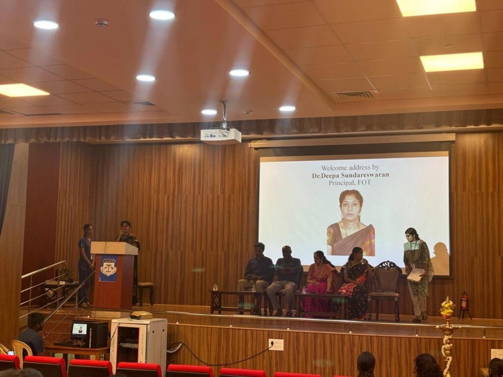 Faculty of Occupational Therapy organised Continuing Occupational Therapy Education Programme on the topic “Shifting Perspectives towards disability” on 20/06/2024. The event took place in Auditorium, MAHER. 90 students of FOT and 10 faculties participated in the same. The program started with a formal inauguration which was graced by Pro Vic Chancellor Prof Dr.C.Krithika, and Registrar Dr.Sureka.V. Dr.Deepa Sundareswaran, Principal, FOT welcomed the dignitaries and the participants. Pro Vice Chancellor Prof.Dr.C.Krithika addressed the gathering and emphasized the importance of COTE. The Chief guest was Dr.Gurunagarajan, Former senior social worker, dept of PMR, CMC Vellore and Guest of honour – Dr.Samson Daniel, Head of Operations National center for Assistive and Health Technologies – IIT M. The Chief guest shared insights about Different models of rehabilitation and Assistive Technology . Ms.Anushka Nanoo, Physiotherapist spoke about the different types of orthosis .