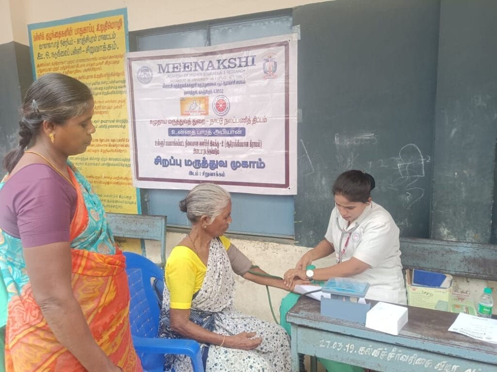On June 27, 2024, a special medical camp was conducted at Siruvakkam village under the Unnat Bharat Abhiyan and National Service Scheme. The objective of this camp was to contribute to the achievement of LSDG Goal 2: creating a healthy village. Specialties like General medicine, ophthalmology, obstetrics and gynecology, ENT, respiratory medicine, dermatology, orthopaedics, dentistry, surgery, paediatrics and community medicine participated in the camp, providing medical services to the local community. A total of 106 beneficiaries received care and support through this initiative.