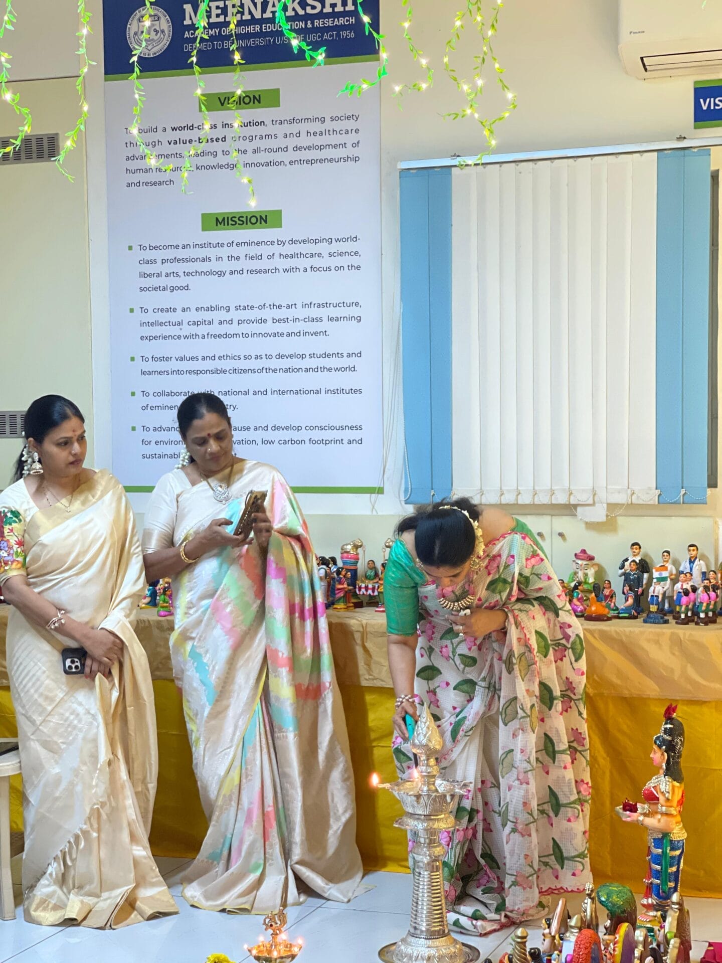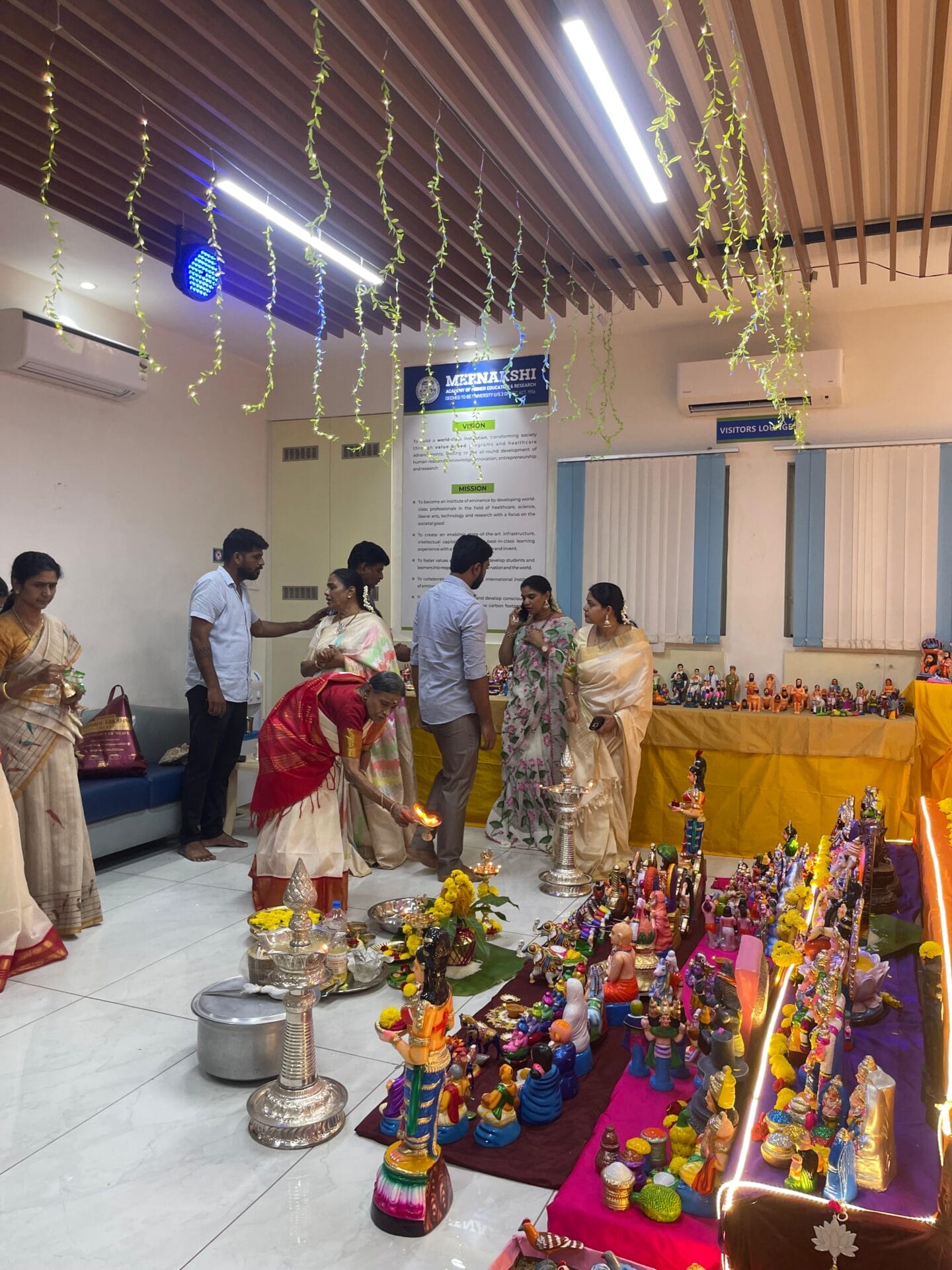 The Navaratri Festival celebrations were inaugurated with grandeur and devotion at MAHER, marking the beginning of nine days of spiritual and cultural vibrance. The first day of the festivities was beautifully organized by Meenakshi College of Physiotherapy, setting a soulful and energetic tone for the celebrations ahead.