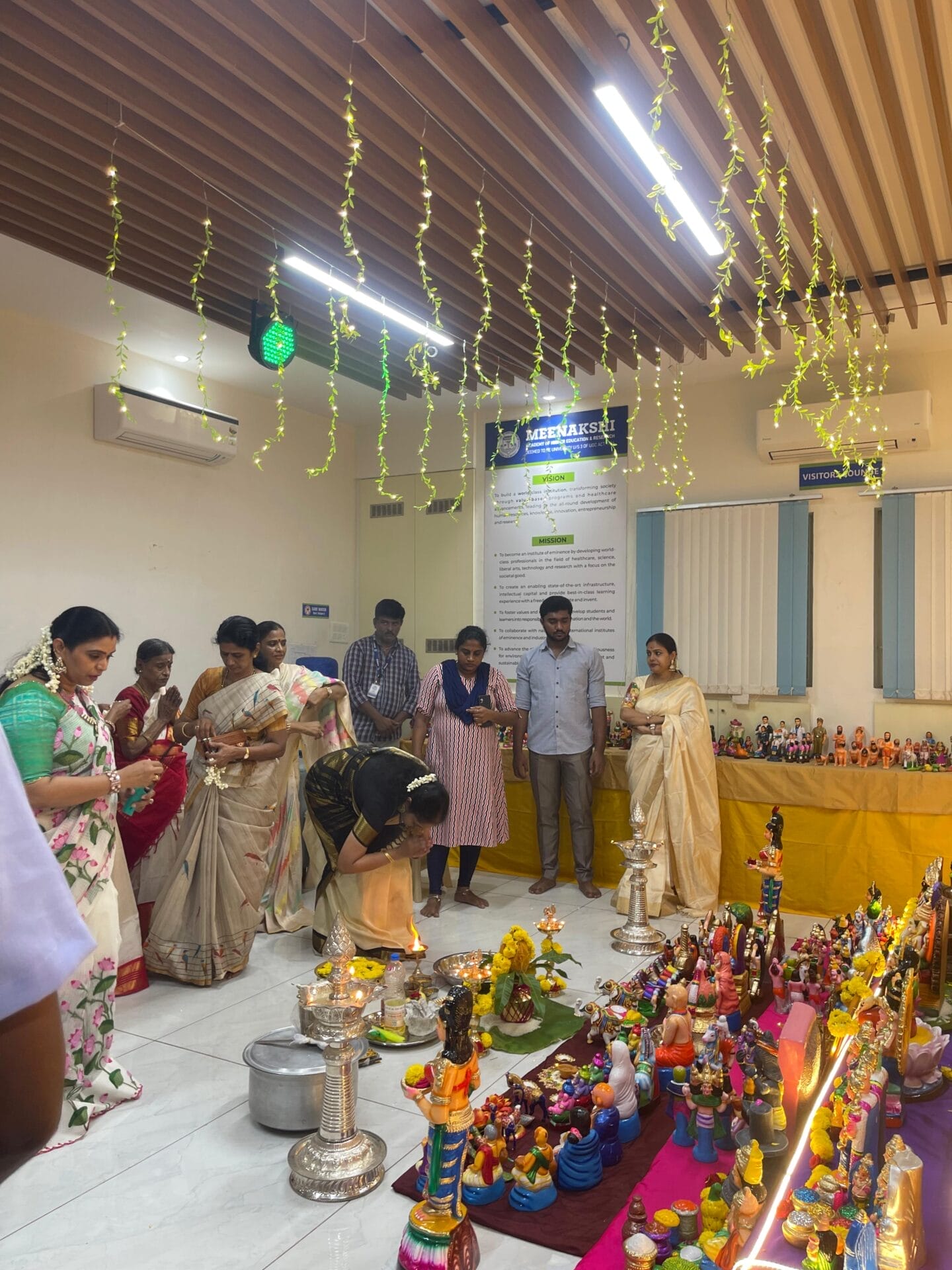 The program began with devotional songs and traditional dance performances by students and faculty of Meenakshi College of Physiotherapy. The performances reflected deep reverence and cultural richness, captivating the audience with their vibrance. The celebration concluded with the distribution of prasadam, symbolizing blessings, unity, and shared joy among all present.