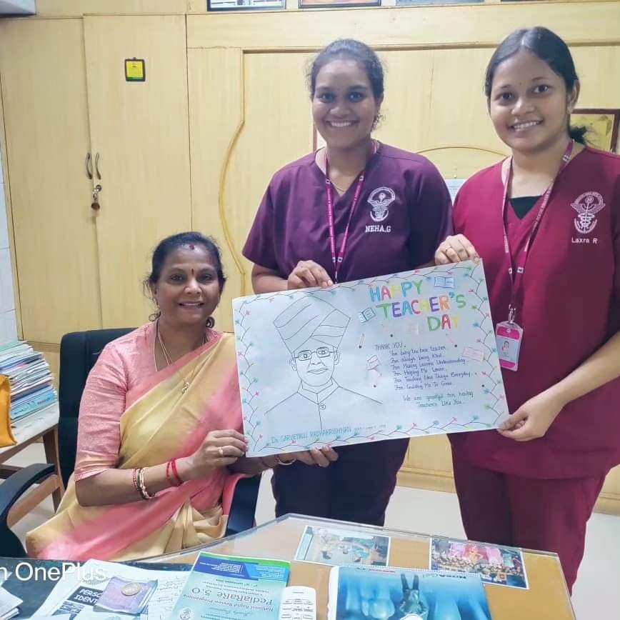 Flowers tribute and Hand made Greeting cards were presented by third year BDS students to the teachers Fun Games for teachers were conducted by the students on occasion of the Teachers’ day.