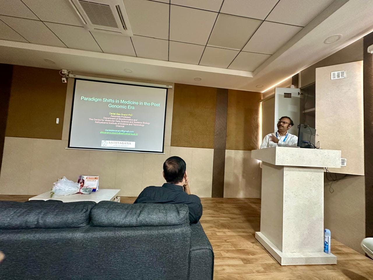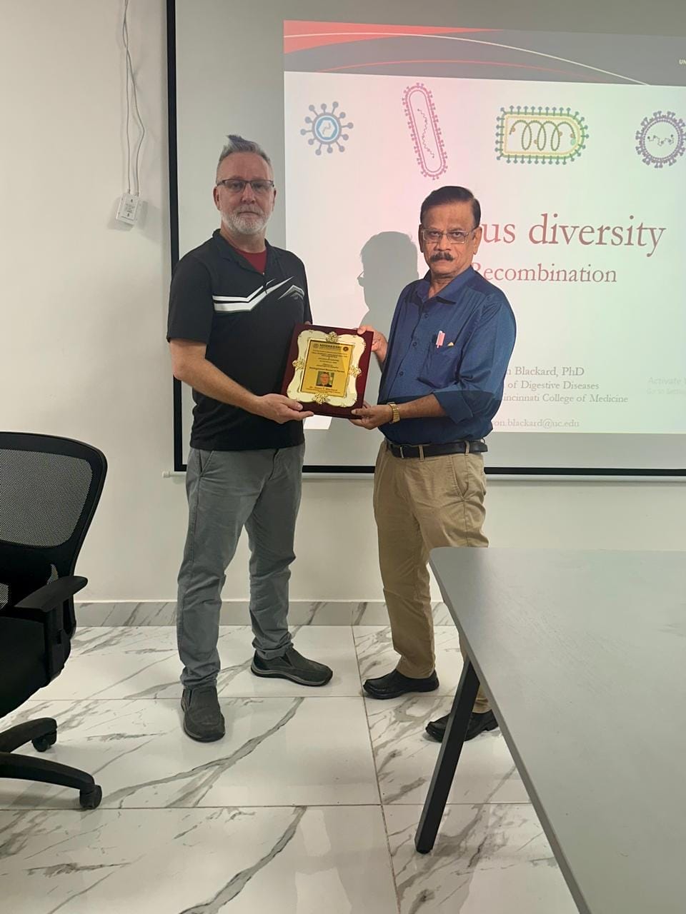 Dr. Jason Blackard (University of Cincinnati) led the first day session covering viral diversity, sequence analysis, drug resistance and vaccine escape while the second day was led by Dr. Daniel Alex Anand (Sathyabama Institute of Science and Technology) covering molecular docking, and ligand toxicity prediction. Participants engaged in hands-on training with advanced bioinformatics tools, with Dr. Thirumal Kumar and Dr. Suvaithenamudhan (Assistant Professors) assisting the hands-on sessions on both days, fostering technical expertise and research collaborations. The event was chaired by Dr. N. Arunagirinathan (Dean, Research) and Dr. P. Balakrishnan (Chief Scientist, Infectious Diseases), with Dr. D. Thirumal Kumar and Dr. Pavithra Amritkumar as co-organizing secretaries. The workshop received excellent feedback for its practical approach and expert-led discussions, empowering researchers with essential computational biology skills.