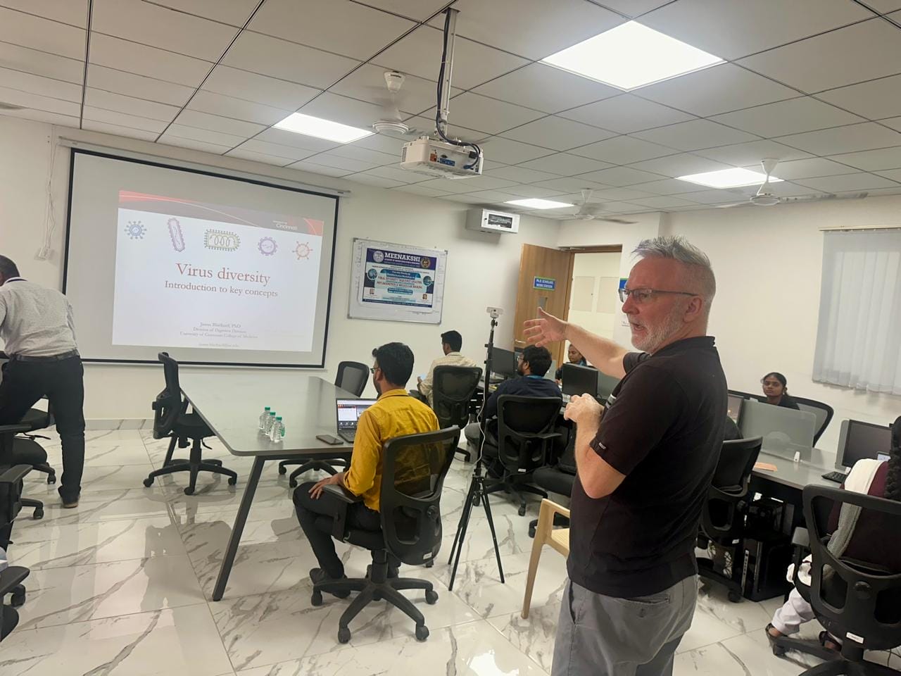 Dr. Jason Blackard (University of Cincinnati) led the first day session covering viral diversity, sequence analysis, drug resistance and vaccine escape while the second day was led by Dr. Daniel Alex Anand (Sathyabama Institute of Science and Technology) covering molecular docking, and ligand toxicity prediction. Participants engaged in hands-on training with advanced bioinformatics tools, with Dr. Thirumal Kumar and Dr. Suvaithenamudhan (Assistant Professors) assisting the hands-on sessions on both days, fostering technical expertise and research collaborations. The event was chaired by Dr. N. Arunagirinathan (Dean, Research) and Dr. P. Balakrishnan (Chief Scientist, Infectious Diseases), with Dr. D. Thirumal Kumar and Dr. Pavithra Amritkumar as co-organizing secretaries. The workshop received excellent feedback for its practical approach and expert-led discussions, empowering researchers with essential computational biology skills.