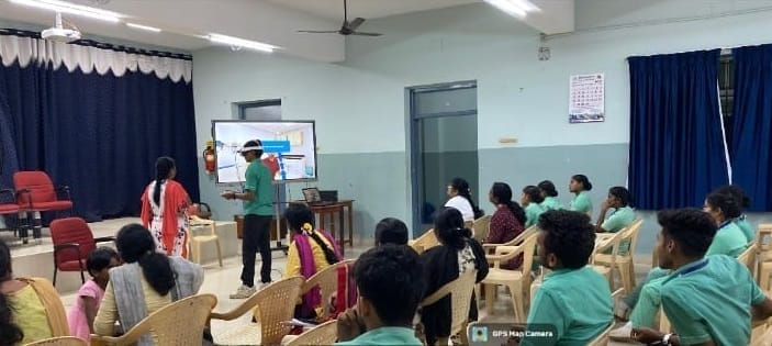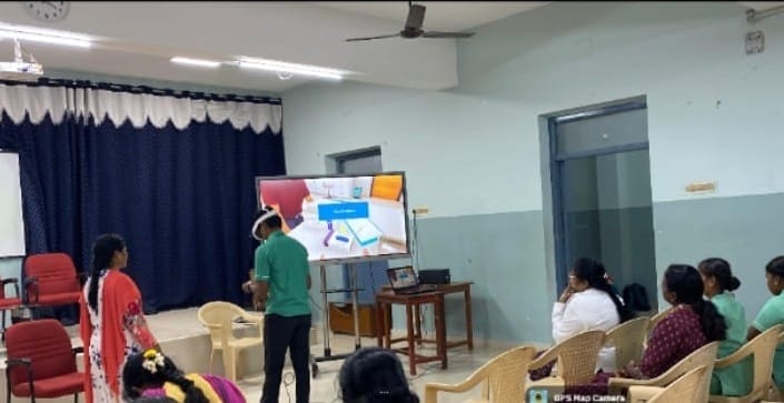 Expert trainers Ms. Jageetheswari and Dr. Chaithanya from MEDISIMVR led the demonstration, showcasing the use of VR technology to simulate nursing techniques. All the Students actively participated, exploring new ways to refine their clinical skills through innovative, tech-driven approaches.