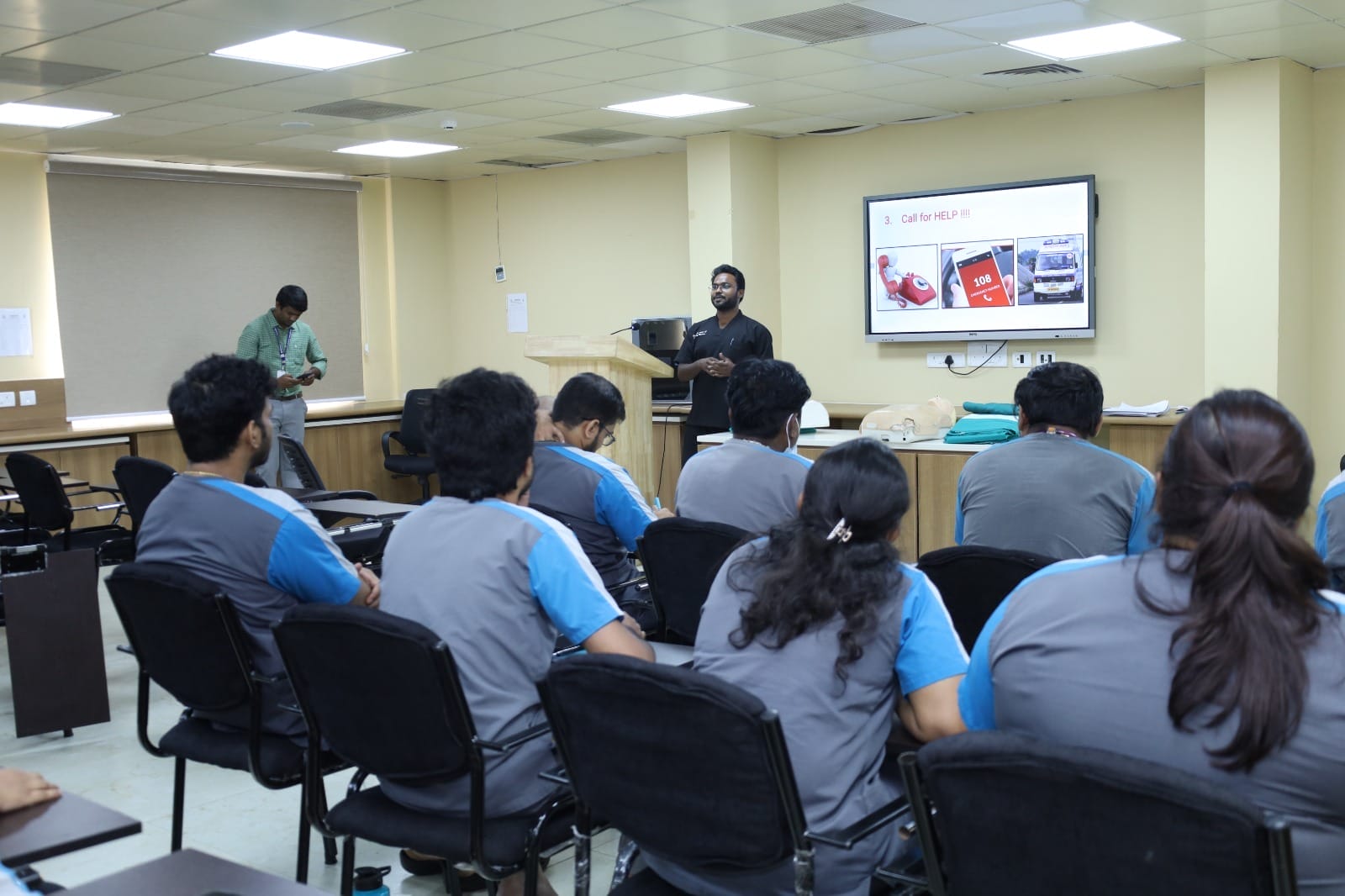 The morning session focused on Basic Life Support, featuring a combination of lectures and hands-on training in CPR techniques and airway management. In the afternoon, participants were introduced to Advanced Cardiovascular Life Support protocols, followed by practical demonstrations and guided practice sessions. The workshop concluded with a written assessment to reinforce learning outcomes.