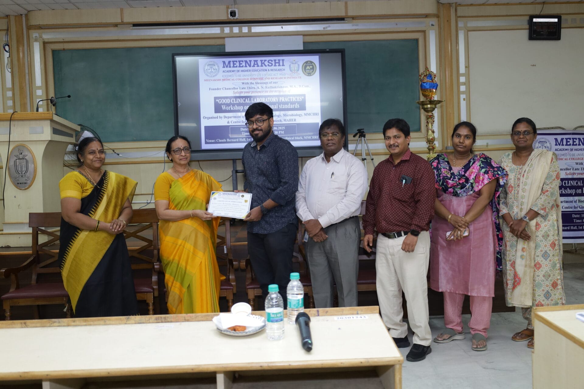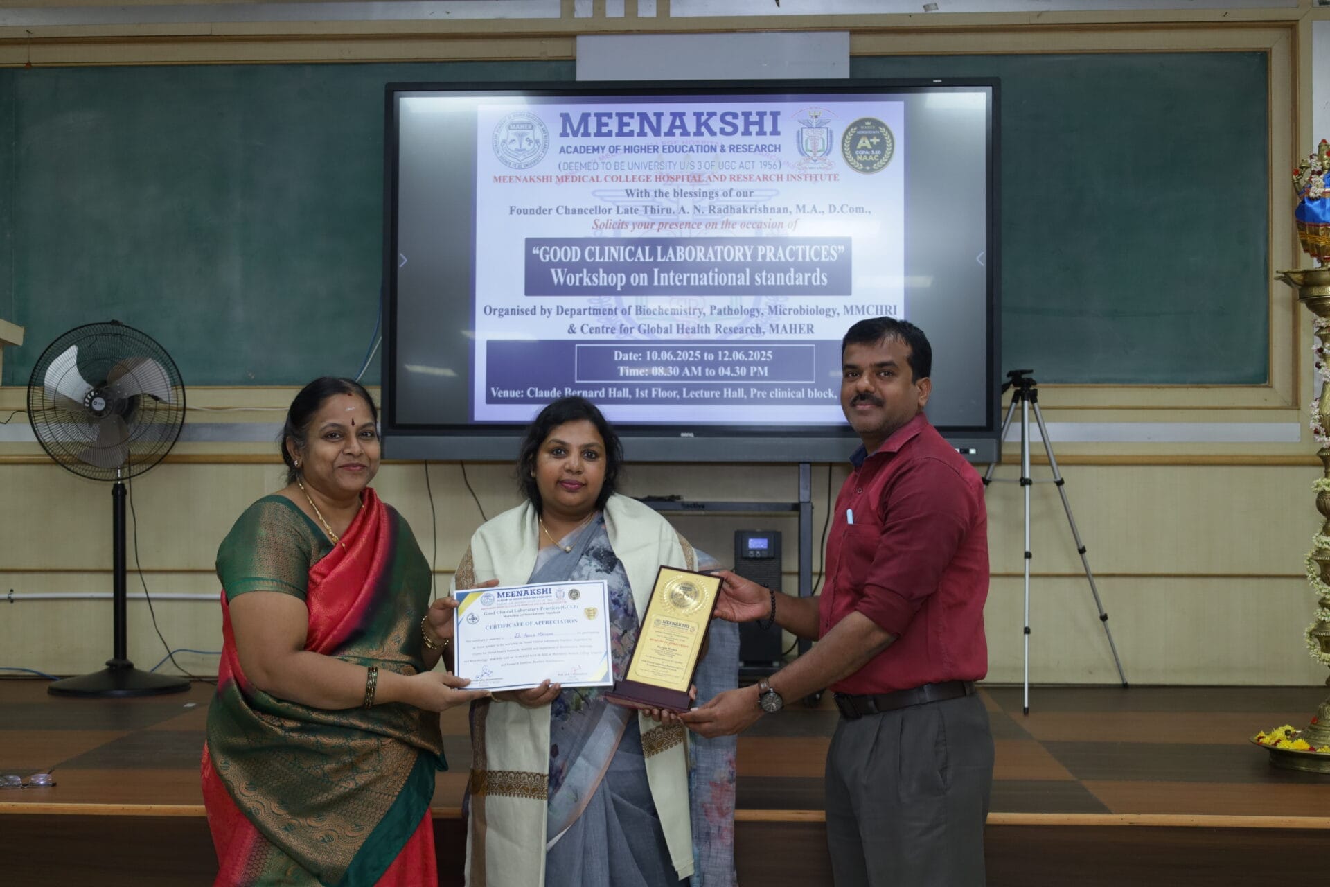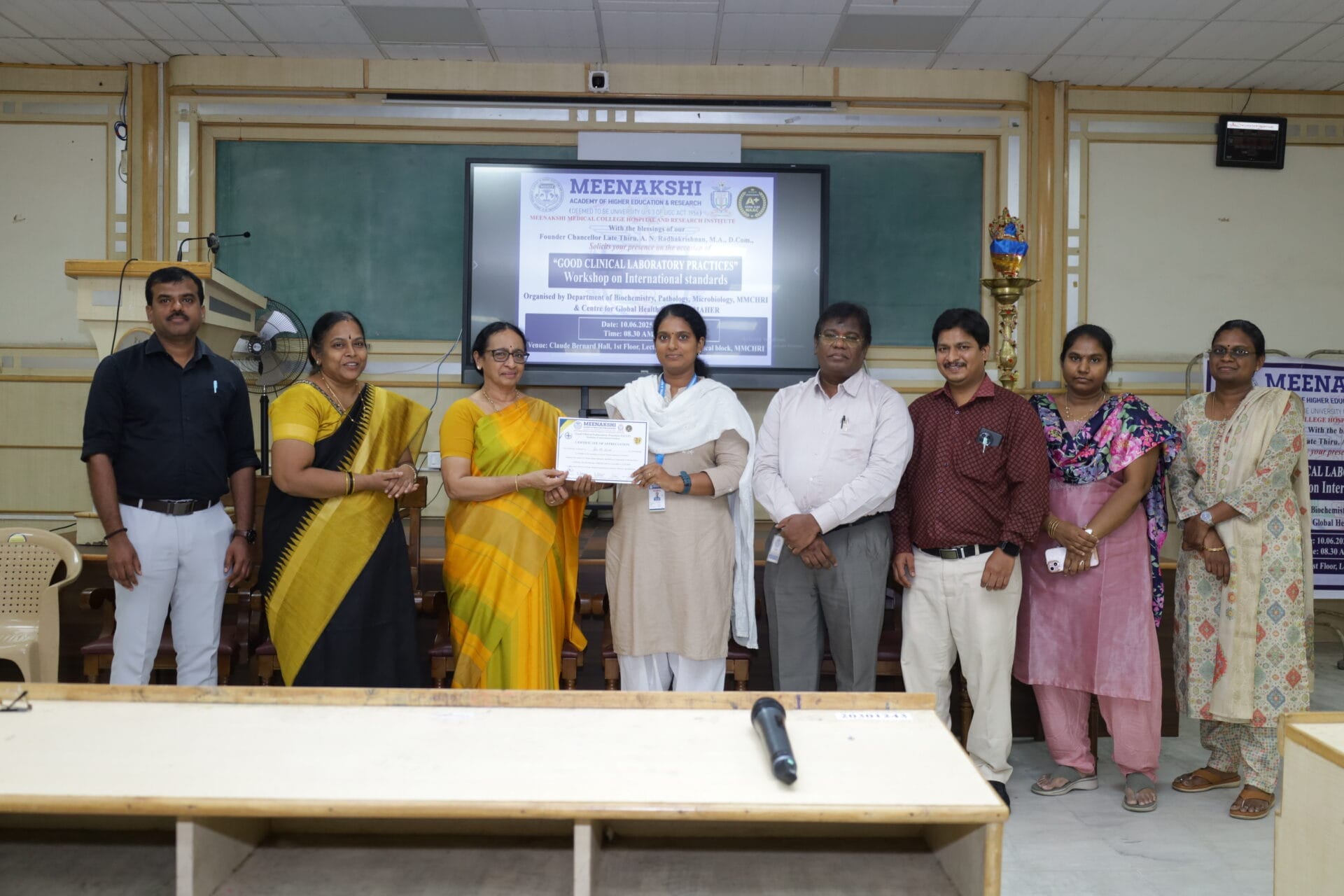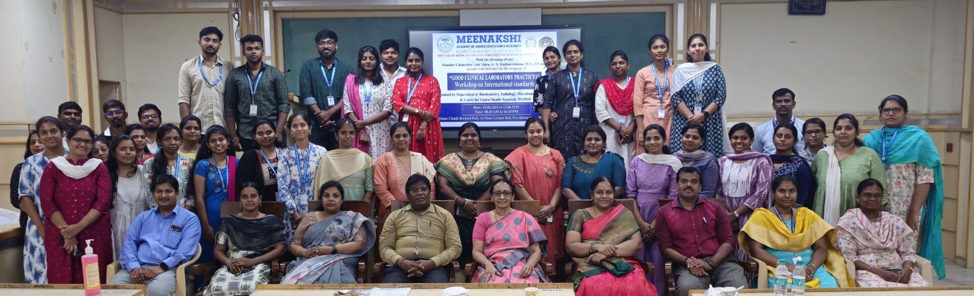 The Centre for Global Health Research, MAHER, in collaboration with the Departments of Biochemistry, Pathology, and Microbiology of Meenakshi Medical College Hospital and Research Institute (MMCHRI), successfully conducted a workshop on “Good Clinical Laboratory Practices” from 10th to 12th June 2025.
