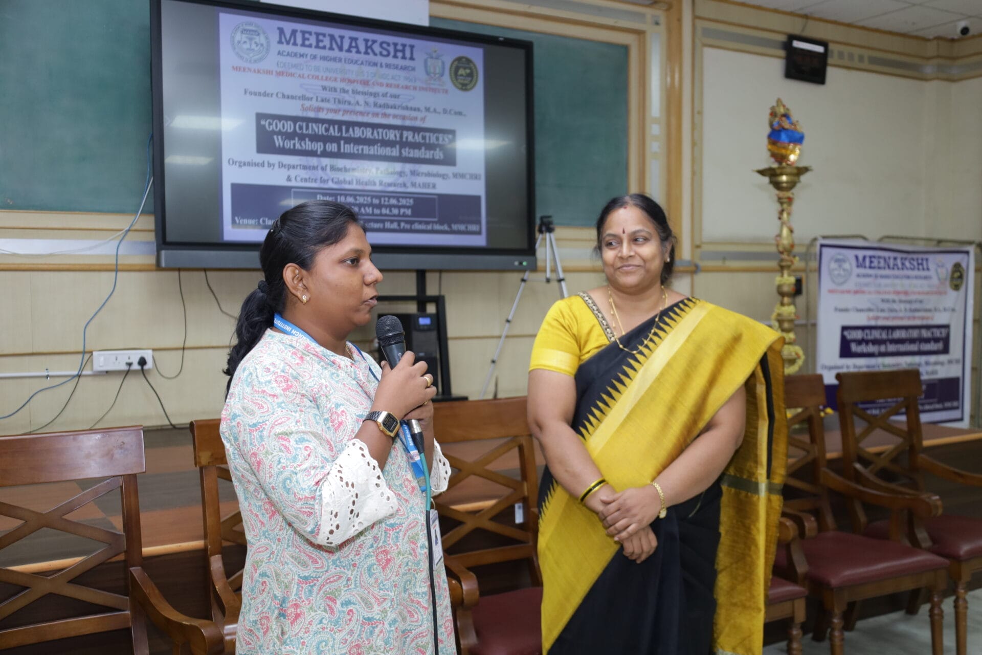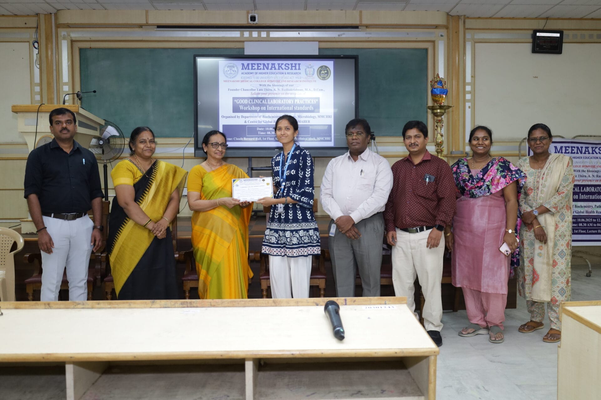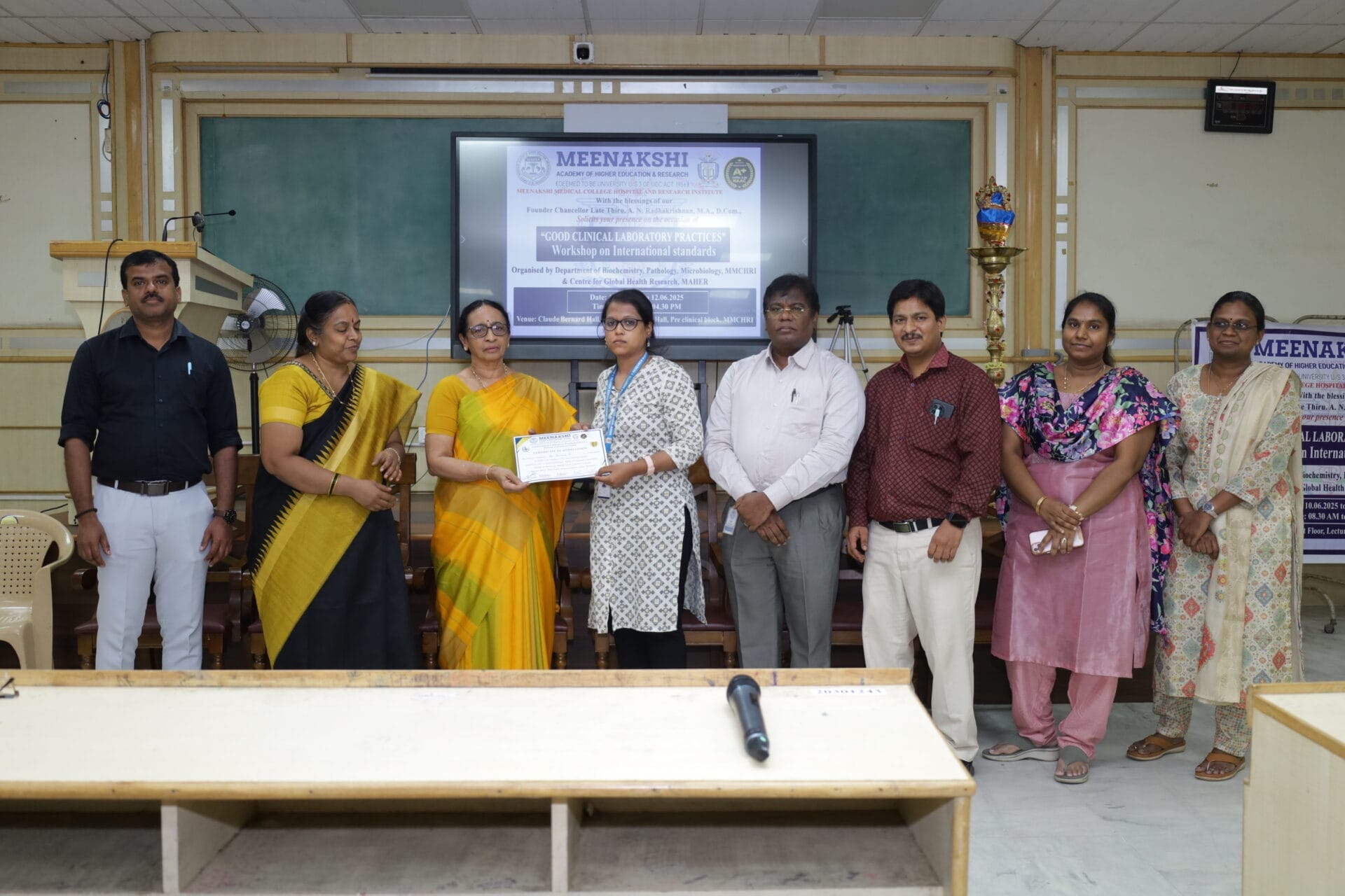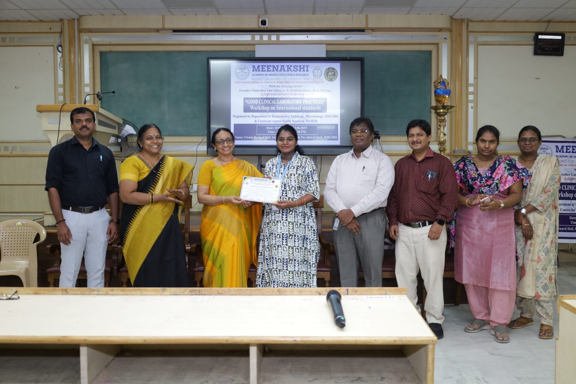 The Centre for Global Health Research, MAHER, in collaboration with the Departments of Biochemistry, Pathology, and Microbiology of Meenakshi Medical College Hospital and Research Institute (MMCHRI), successfully conducted a workshop on “Good Clinical Laboratory Practices” from 10th to 12th June 2025.