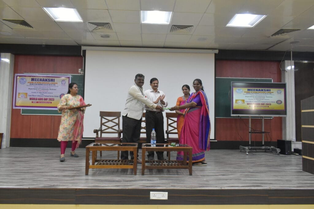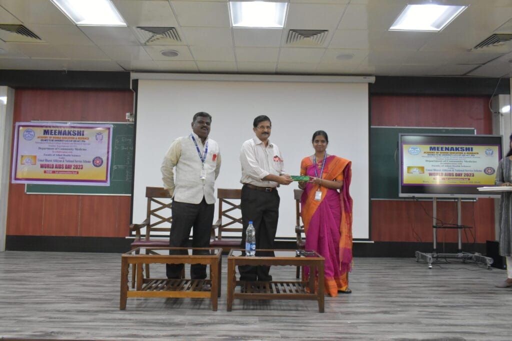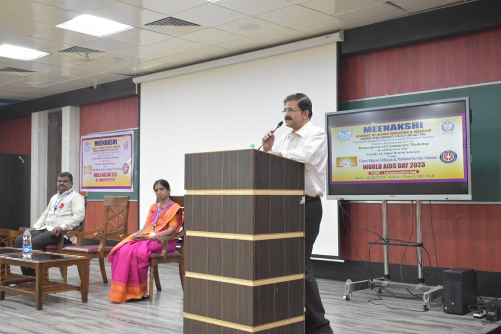 Under the Auspices of Meenakshi Academy of Higher Education and Research, on the occasion of “World AIDS Day” under the theme of “Lets Communities Lead”. AIDS Awareness event conducted in New CME Hall, Meenakshi medical college and research Institute on 01.12.2023. Program was organized by the Department of Community Medicine in collaboration with Allied health sciences under Unnat Bharat Abhiyan, and National Service Scheme.