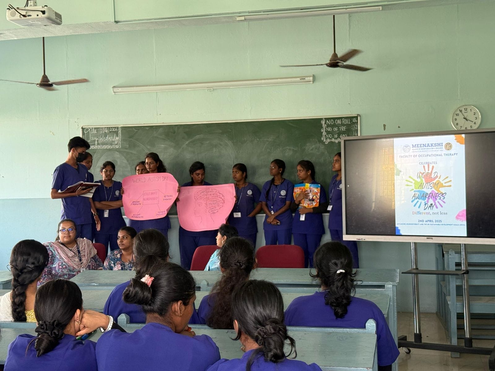On 2nd April, 2025, the Faculty of Occupational Therapy, MAHER marked World Autism Awareness Day with an engaging and informative celebration from 3:30 PM to 4:30 PM. The event saw the active participation of 45 students and 3 faculty members, united in raising awareness about autism and promoting a deeper understanding of neurodiversity.