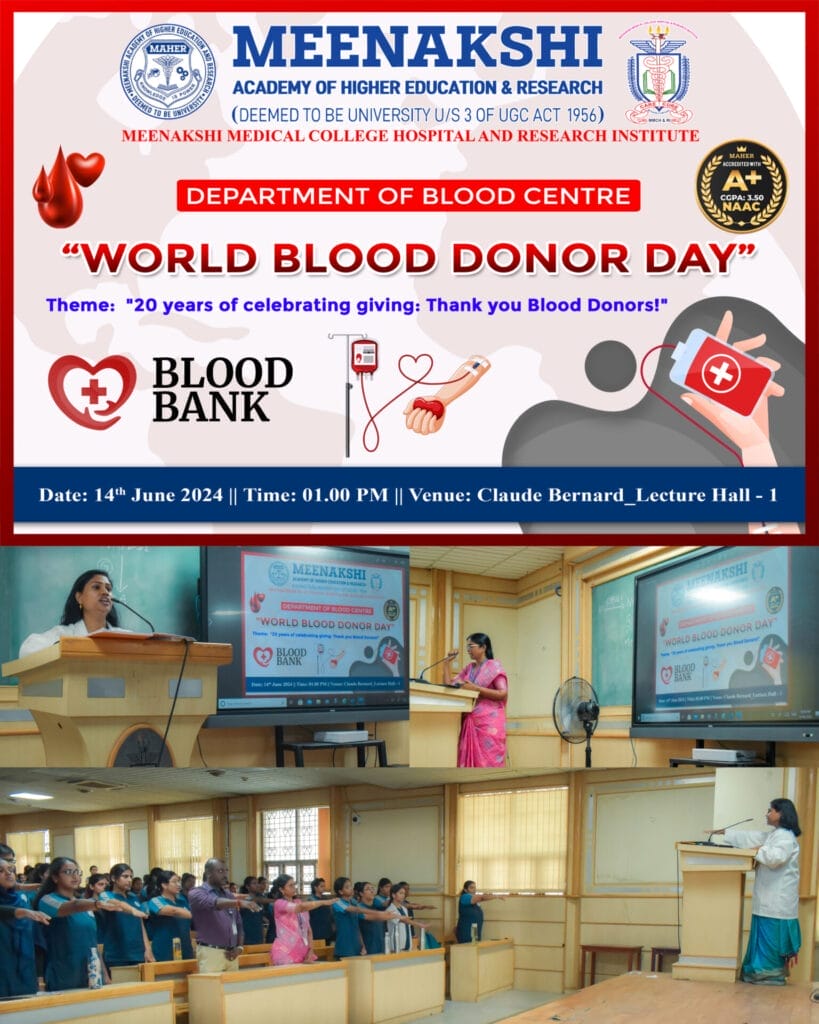 Department of Blood Centre, MMCHRI celebrated the WORLD BLOOD DONOR DAY 2024 with the theme of “20 years of celebrating giving, Thank you Blood Donors.” on June 14th 2024.