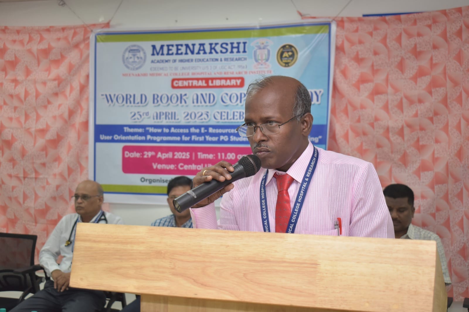 Dr. Anbazhagan, Professor of General Medicine and Library Committee Coordinator, delivered the Felicitation Address, appreciating the committee’s efforts in organizing the event and encouraging students to make the most of the library’s resources.