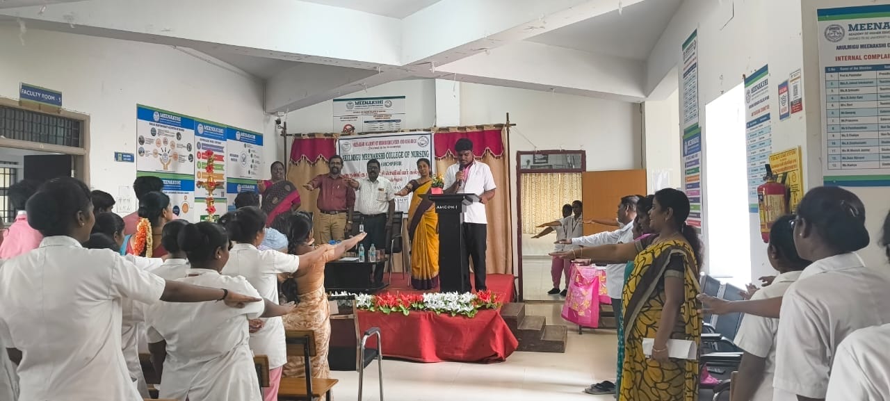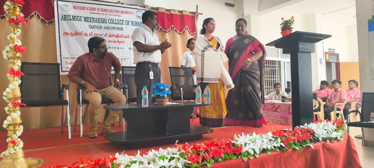 The Student Nurses Association (SNA) and Cultural Committee of Arulmigu Meenakshi College of Nursing (AMCON) jointly observed World Earth Day 2025 on April 22, 2025, from 10:30 AM to 12:30 PM in the college’s Multipurpose Hall. The event embraced the global theme “Our Power, Our Planet.”