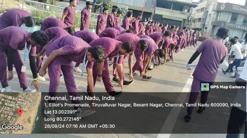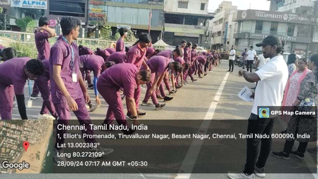 On behalf of “World Physiotherapy day” Faculty of Physiotherapy , MAHER organized Reverse Walking-Rally on 28.09.2024 at Elliot’s Beach, Besent Nagar for a kilometre (Thalapaakatti to Murugan idli hotel) between 7 AM and 8 AM. The objective of this rally was to create awareness on Reverse walking and how it helps the people on their biomechanical perspective. The Rally captured the interest of people around the Beach area. We concluded the program by thanking the Department of Police, Vepery for providing us the permission and supporting to conduct the rally. The rally was dispersed by appreciating all the participants and the Principal Prof. R. Parthasarathy, Faculty members of Physiotherapy for their constant effort towards the event.