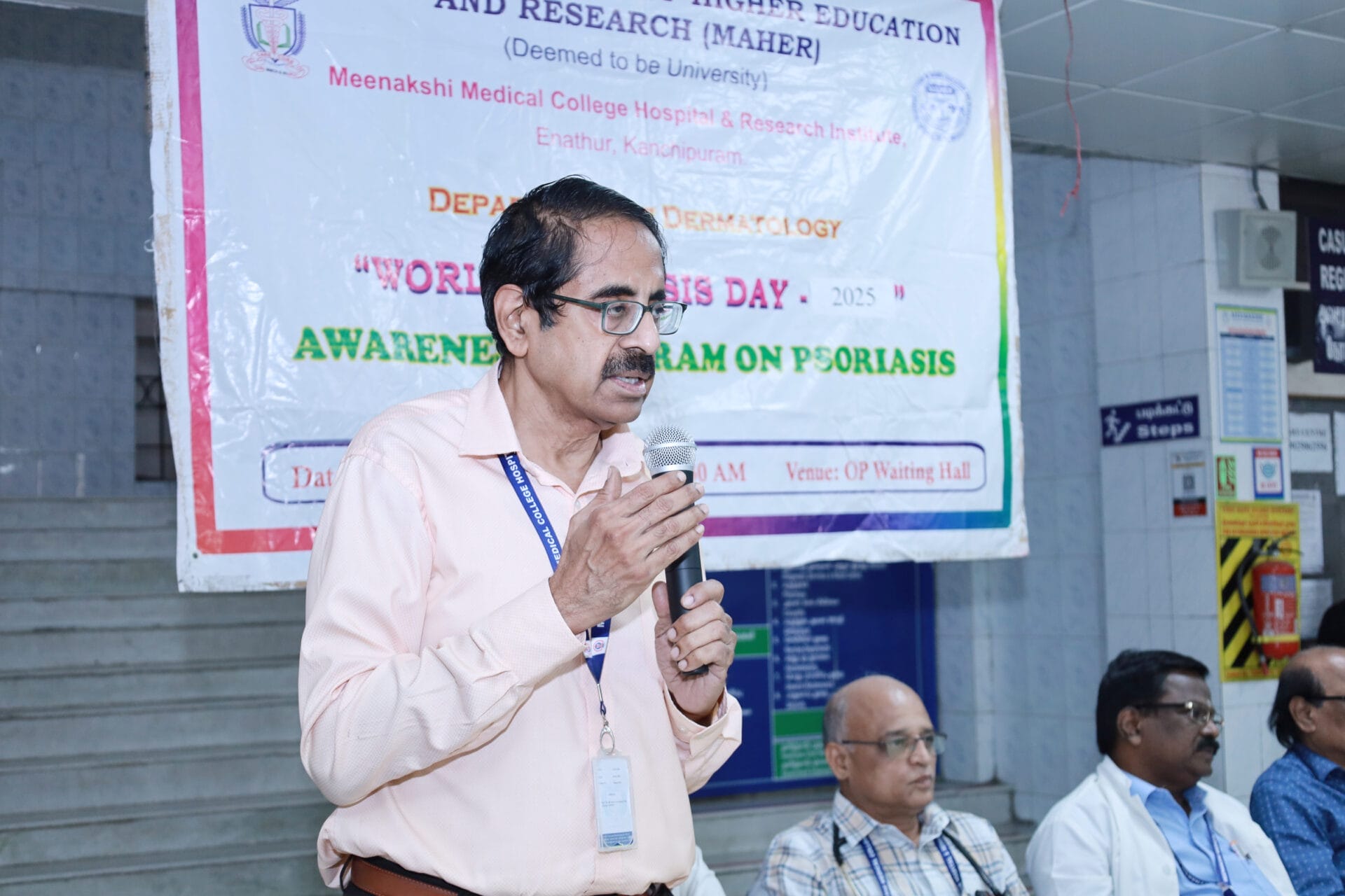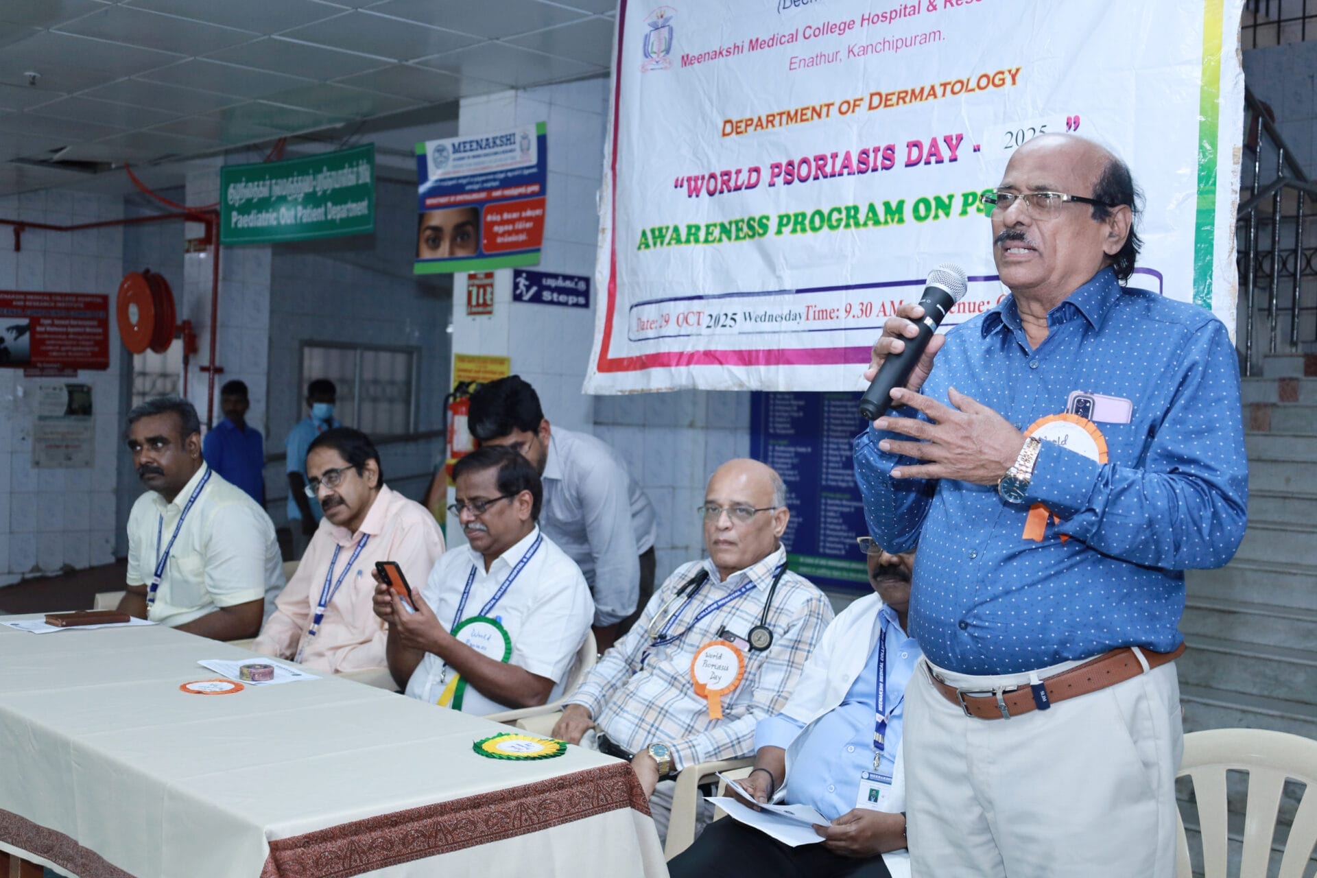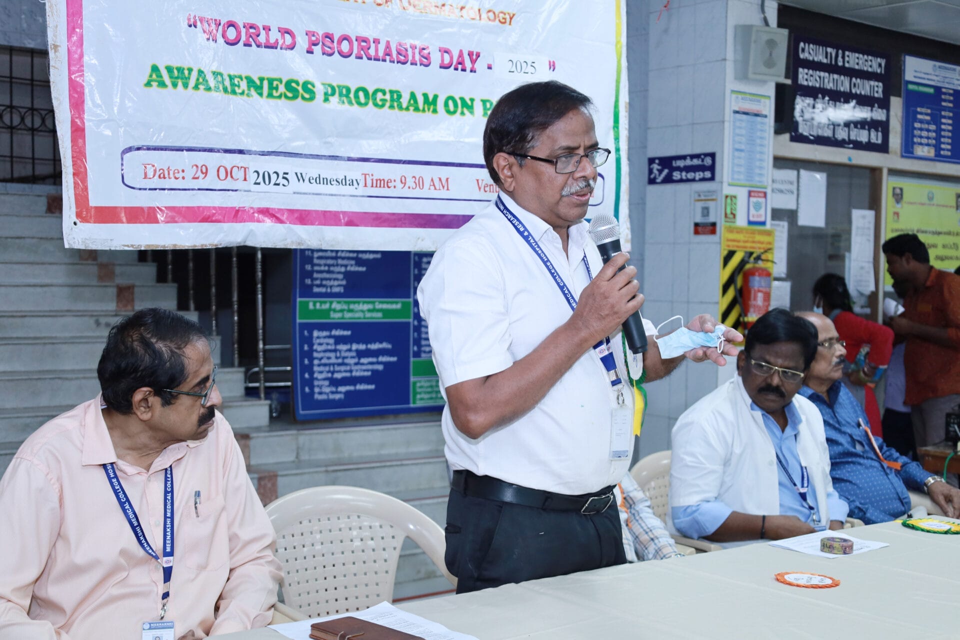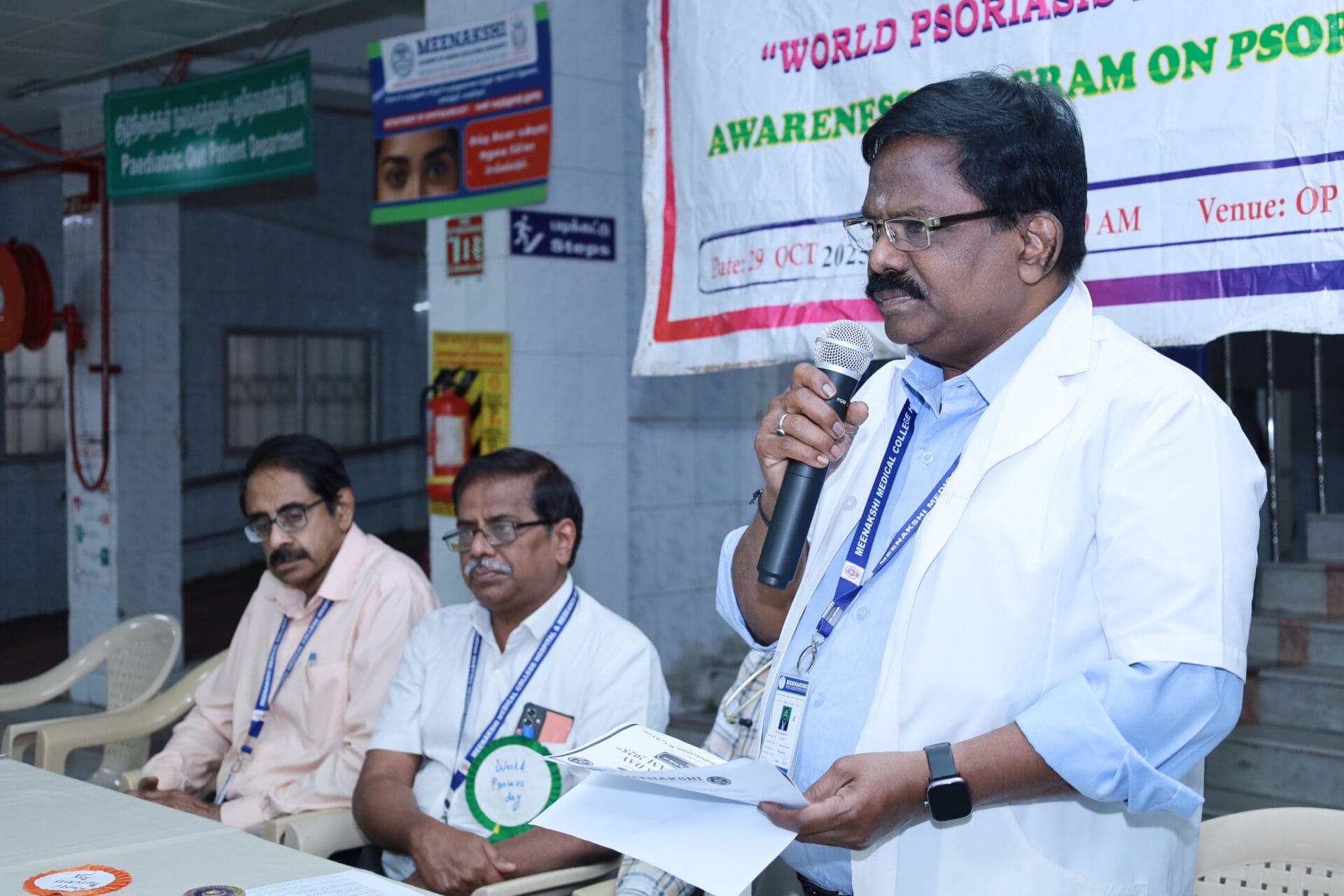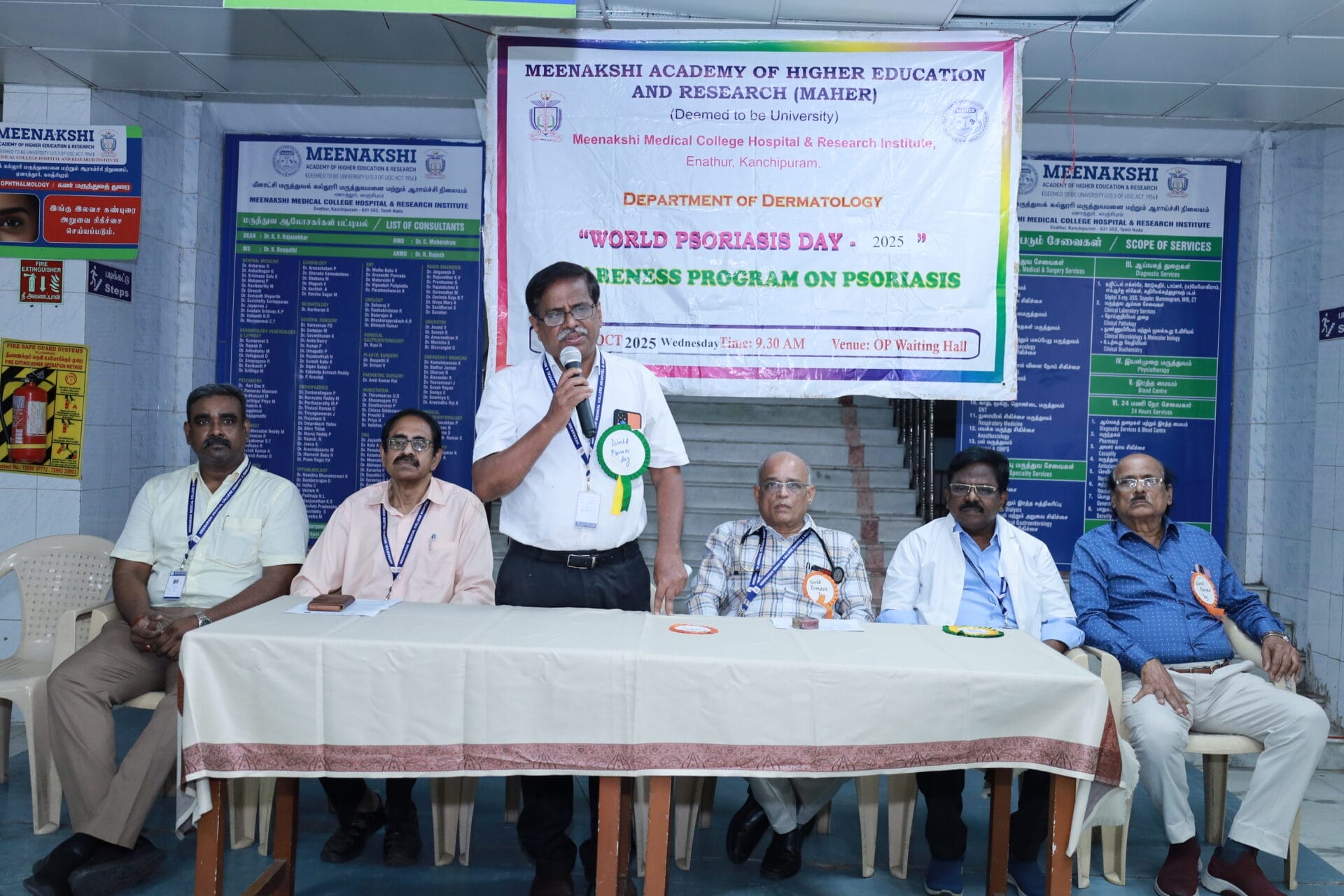 The Department of Dermatology, Venereology, and Leprosy of Meenakshi Medical College Hospital & Research Institute (MMCHRI), Kanchipuram, organized a “World Psoriasis Day Awareness Program 2025” on October 29, 2025, at the OPD Waiting Hall. The event aimed to raise awareness among patients and the public about psoriasis- its symptoms, management, and the importance of early diagnosis.