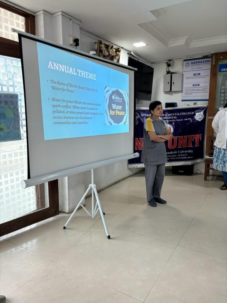 World water day is celebrated by the Department of Public Health Dentistry , Meenakshi Ammal Dental College on 22.03.2024 enlightening the theme “Leveraging Water For Peace” and spreading awareness among people on the importance of preserving and using water judiciously .