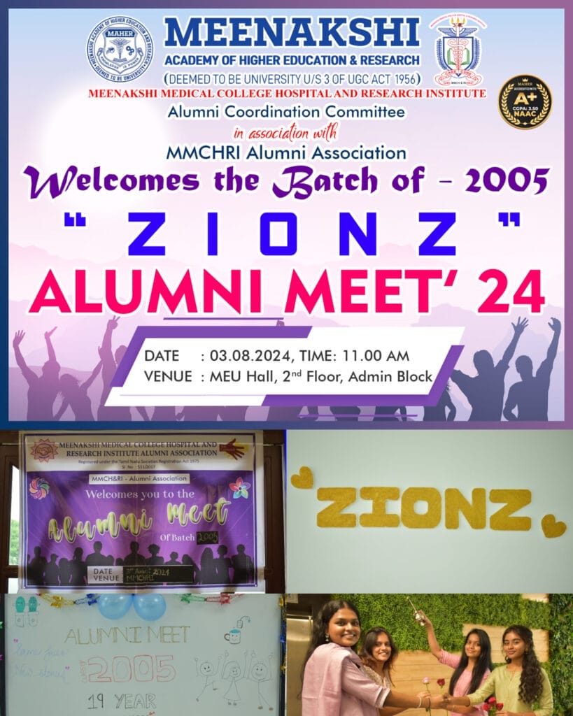 Alumni Coordination Committee in association with MMCHRI Alumni Association conducted the “ZIONZ” Alumni Meet’ 24 for the batch of 2005 on 03-08-2024.